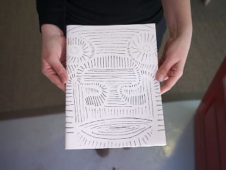Ô figures ! est un livre de dessin. Mais si la suite des faciès rassemblés évoque les dessins automatiques et l'enfance, nous sommes loin ici de l'album de coloriage. Rien dans les traits n'évoque simplement un visage. La géométrie intuitive mise en oeuvre trace des agencements qui se structurent, répondent au geste initial, au premier trait qui informe l'espace et définit la logique qui établira au final la physionomie. Les divisions, les entrelacements de séries de lignes constituent des masses qui s'équilibrent. Ce qui nous place dans certains cas face à des quasi masques, animés de forces centrifuges, nous laissant à nos incantations muettes. Face à ce même appel, à l'invocation qui retentit dans le titre de l'ouvrage et qui rebondit sur les figures graves, indociles. Pour les cerner, nous devons chercher à lire ces lignes, rendus attentifs à la perception de l'aspect.